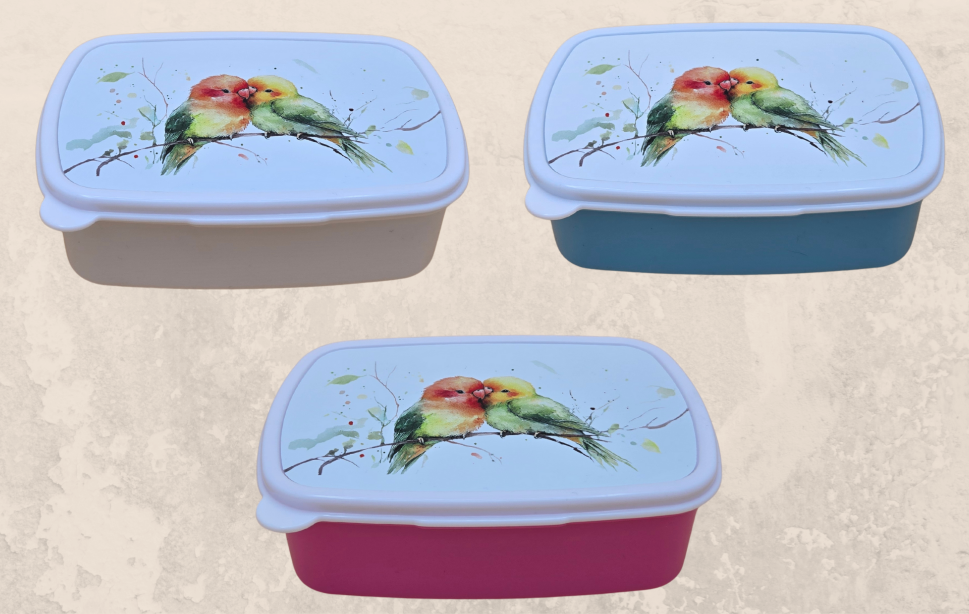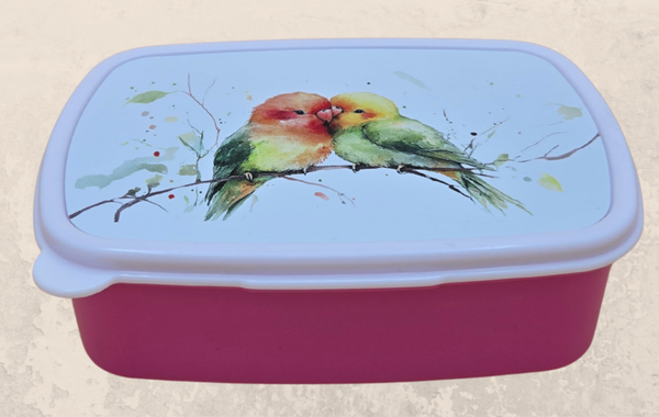 Lunchbox Twee vogels groen-geel-rood
