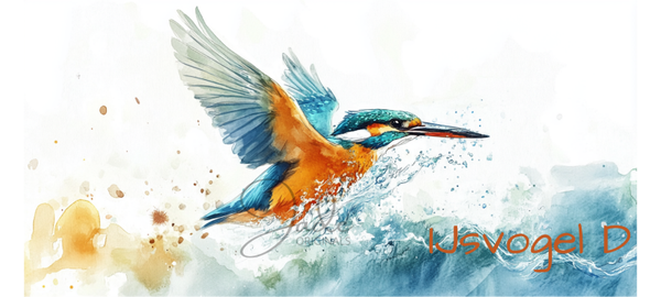De koning van de rivier. Net als in het echte leven laat de ijsvogel zich moeilijk op de gevoelige plaat leggen. De mok is rondom bedrukt. Om een goede indruk te krijgen van de mok hebben we een complete afbeelding toegevoegd.